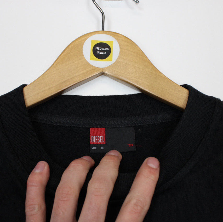 Vintage 00's Diesel Black Crew Neck Spellout Sweatshirt Jumper Size on label: Small Our recommended size: Small Pit to pit (inches): 20 Length (inches): 25 All products listed are vintage unless stated otherwise in the description. These items are pre-loved and pre-worn, resulting in small signs of wear and minor fading. We think this adds to their unique authenticity, but if an item has any major flaws these will be stated below. Please contact us if you have any further questions!