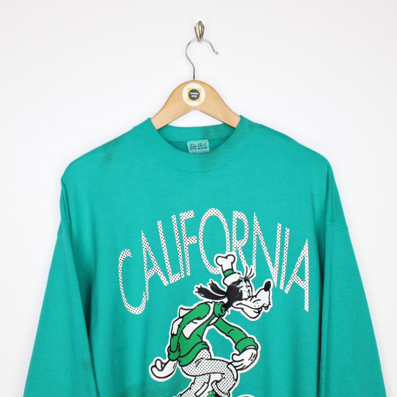 Vintage 00's Disney California USA Green Crew Neck Graphic Spellout Sweatshirt Jumper