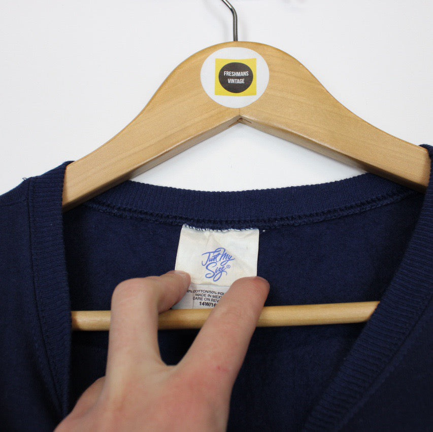 Vintage 90's Disney Tigger Navy Blue Crew Neck Spellout Sweatshirt Jumper Size on label: 14 Our recommended size: Women's XL Pit to pit (inches): 24 Length (inches): 26 All products listed are vintage unless stated otherwise in the description. These items are pre-loved and pre-worn, resulting in small signs of wear and sometimes minor flaws. We think this adds to their unique authenticity, but if an item has any bigger flaws these will be stated. - The sweatshirt has a patch of discolouration to the front and back, this is reflected in the price Please contact us if you have any further questions!