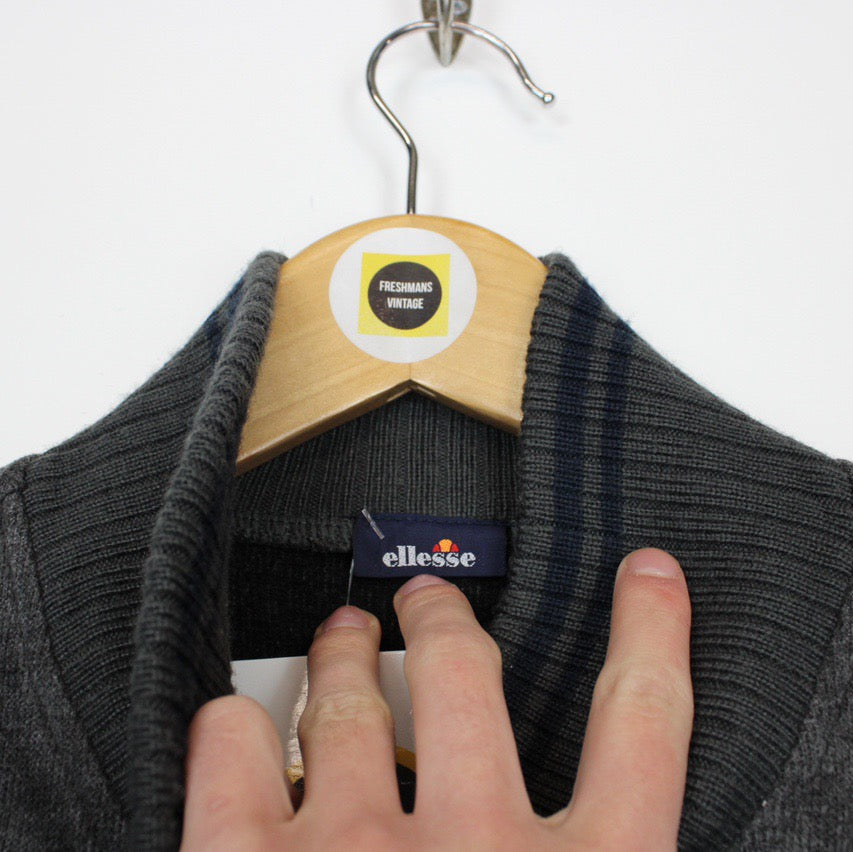 Vintage 90's Ellesse Dark Grey Pullover 1/4 Zip Spellout Sweatshirt Jumper Size on label: Large Our recommended size: Large Pit to pit (inches): 23.5 Length (inches): 29 All products listed are vintage unless stated otherwise in the description. These items are pre-loved and pre-worn, resulting in small signs of wear and sometimes minor flaws. We think this adds to their unique authenticity, but if an item has any bigger flaws these will be stated. Please contact us if you have any further questions!