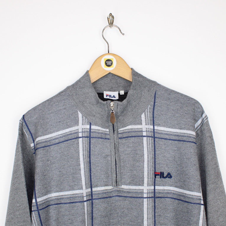 Vintage 90's Fila Grey Checked 1/4 Zip Pullover Spellout Sweatshirt Jumper Size on label: Large Our recommended size: Large Pit to pit (inches): 22.5 Length (inches): 28 All products listed are vintage unless stated otherwise in the description. These items are pre-loved and pre-worn, resulting in small signs of wear and minor fading. We think this adds to their unique authenticity, but if an item has any major flaws these will be stated below. Please contact us if you have any further questions!