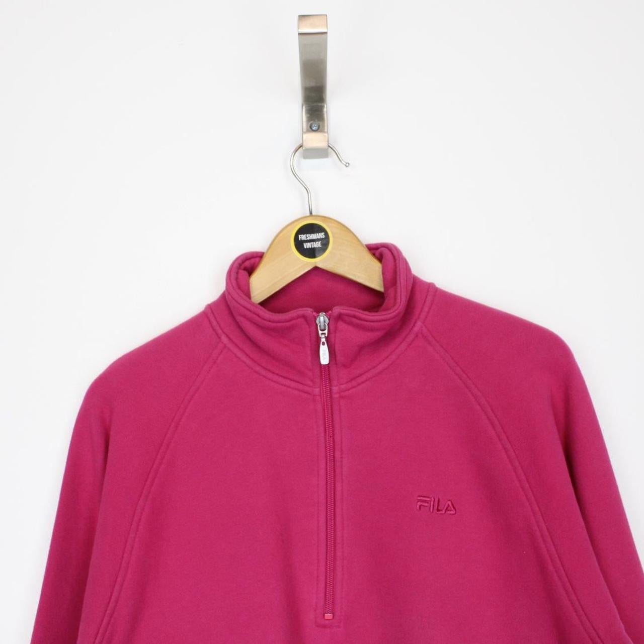 Vintage 00s Fila Pink 1/4 Zip Spellout Sweatshirt Jumper