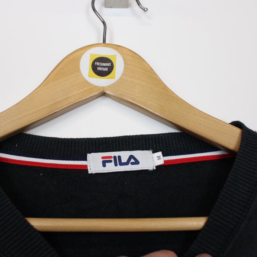 Vintage 00's Fila Black Crew Neck Spellout Sweatshirt Jumper Size on label: Women's Medium Our recommended size: Women's Medium Pit to pit (inches): 23.5 Length (inches): 23.5 All products listed are vintage unless stated otherwise in the description. These items are pre-loved and pre-worn, resulting in small signs of wear and minor fading. We think this adds to their unique authenticity, but if an item has any major flaws these will be stated below. Please contact us if you have any further questions!