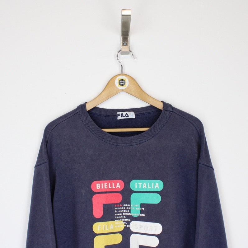 Vintage 90's Fila Navy Blue Crew Neck Spellout Sweatshirt Jumper Size on label: I Our recommended size: Medium Pit to pit (inches): 24 Length (inches): 26 All products listed are vintage unless stated otherwise in the description. These items are pre-loved and pre-worn, resulting in small signs of wear and minor fading. We think this adds to their unique authenticity, but if an item has any major flaws these will be stated below. - The sweatshirt has some piling/discolouration throughout, this is reflected in the price Please contact us if you have any further questions!