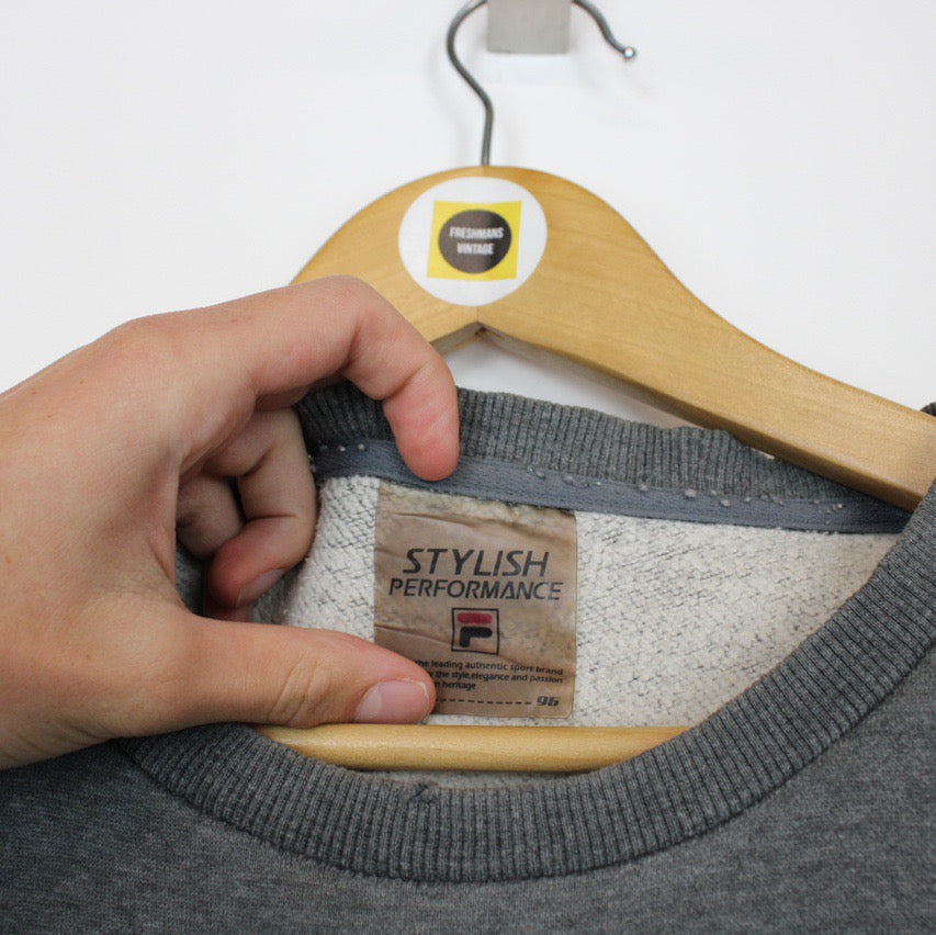 Vintage 00's Fila Grey Crew Neck Spellout Sweatshirt Jumper Size on label: 95 Our recommended size: Medium Pit to pit (inches): 22.5 Length (inches): 26 All products listed are vintage unless stated otherwise in the description. These items are pre-loved and pre-worn, resulting in small signs of wear and minor fading. We think this adds to their unique authenticity, but if an item has any major flaws these will be stated below. - The sweatshirt has some prominent marks to the front, this is reflected in the price Please contact us if you have any further questions!