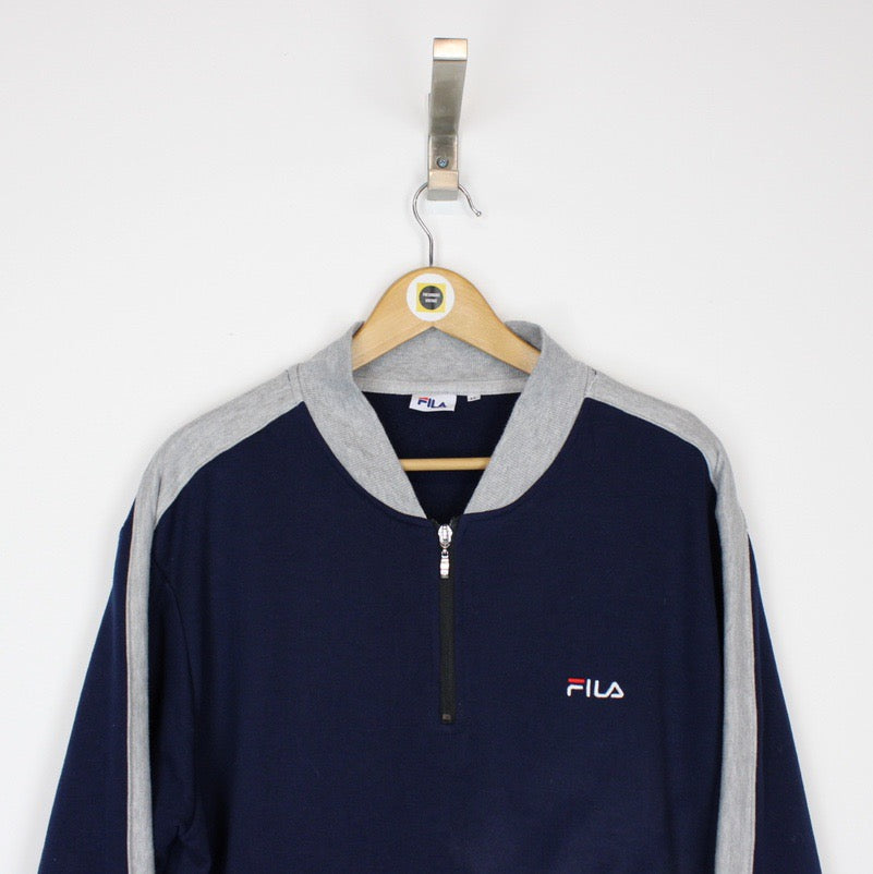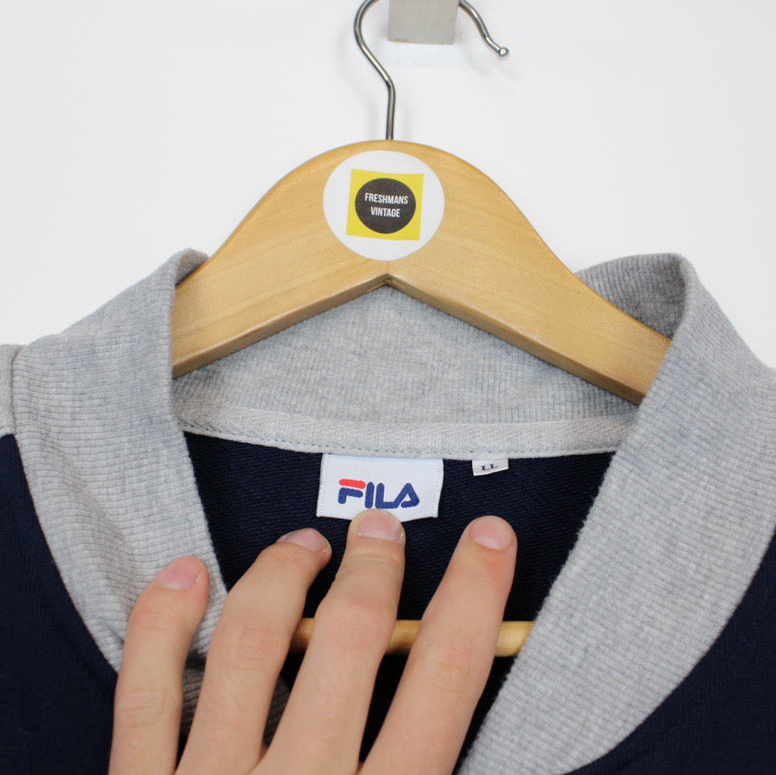 Vintage 00's Fila Navy Blue and Grey Pullover 1/4 Zip Spellout Sweatshirt Jumper Size on label: LL Our recommended size: XL Pit to pit (inches): 23.5 Length (inches): 28 All products listed are vintage unless stated otherwise in the description. These items are pre-loved and pre-worn, resulting in small signs of wear and sometimes minor flaws. We think this adds to their unique authenticity, but if an item has any bigger flaws these will be stated. - The sweatshirt does have some fading to the front, this is reflected in the price Please contact us if you have any further questions!