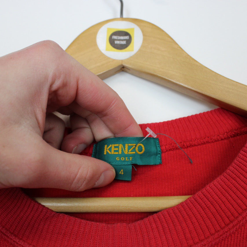 Vintage 90's Kenzo Red and Multicoloured Crew Neck Spellout Sweatshirt Jumper Size on label: 4 Our recommended size: Large Pit to pit (inches): 23.5 Length (inches): 27 All products listed are vintage unless stated otherwise in the description. These items are pre-loved and pre-worn, resulting in small signs of wear and sometimes minor flaws. We think this adds to their unique authenticity, but if an item has any bigger flaws these will be stated. - The sweatshirt has some marks to the sleeves, this is reflected in the price Please contact us if you have any further questions!