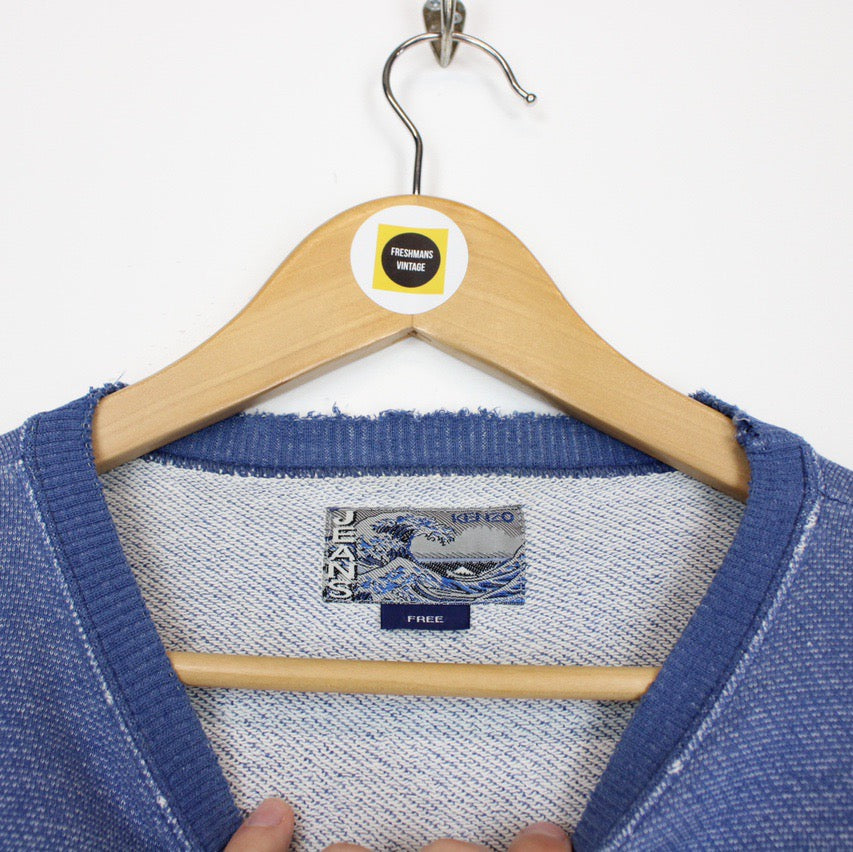 Vintage 90's Kenzo Blue and Black Crew Neck Spellout Sweatshirt Jumper Size on label: FREE Our recommended size: Medium Pit to pit (inches): 25 Length (inches): 26.5 All products listed are vintage unless stated otherwise in the description. These items are pre-loved and pre-worn, resulting in small signs of wear and sometimes minor flaws. We think this adds to their unique authenticity, but if an item has any bigger flaws these will be stated. - The sweatshirt does have some shredding to the collar Please contact us if you have any further questions!