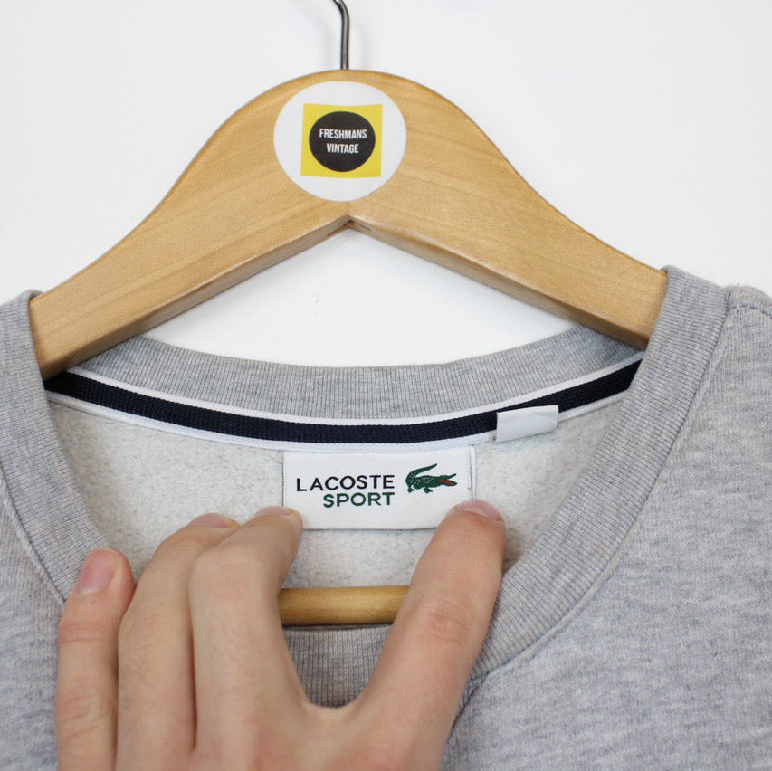 Vintage 00's Lacoste Grey Crew Neck Sweatshirt Jumper Size on label: Size 4 Our recommended size: Small Pit to pit (inches): 21 Length (inches): 25 All products listed are vintage unless stated otherwise in the description. These items are pre-loved and pre-worn, resulting in small signs of wear and minor fading. We think this adds to their unique authenticity, but if an item has any major flaws these will be stated below. Please contact us if you have any further questions!