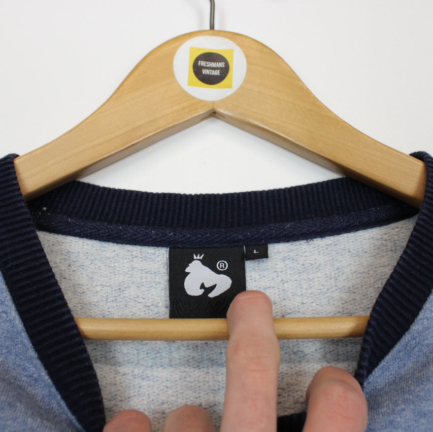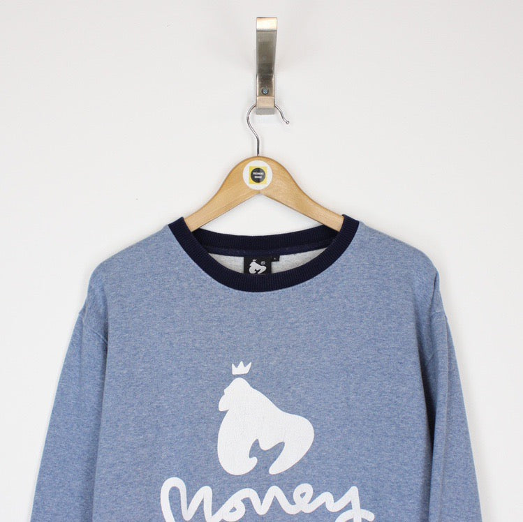 Vintage 00's Money Light Blue Crew Neck Spellout Sweatshirt Jumper Size on label: Large Our recommended size: Large Pit to pit (inches): 23 Length (inches): 27 All products listed are vintage unless stated otherwise in the description. These items are pre-loved and pre-worn, resulting in small signs of wear and minor fading. We think this adds to their unique authenticity, but if an item has any major flaws these will be stated below. Please contact us if you have any further questions!
