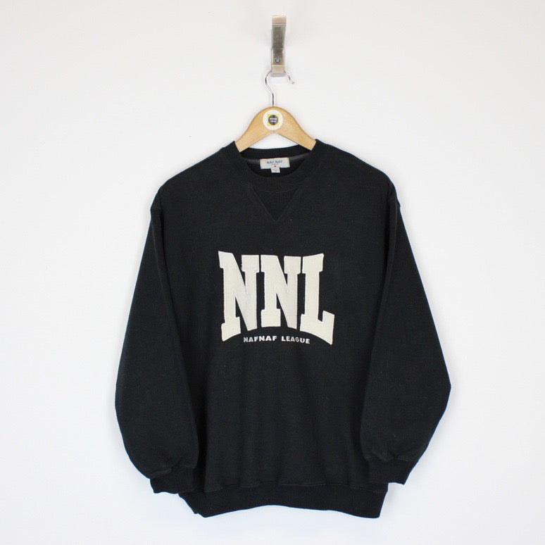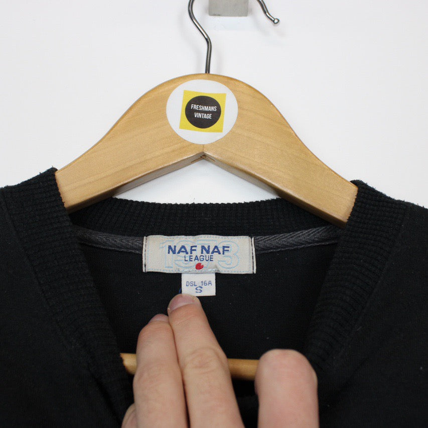 Vintage 90's Naf Naf Black and White Crew Neck Spellout Sweatshirt Jumper Size on label: Small Our recommended size: Small Pit to pit (inches): 21.5 Length (inches): 25 All products listed are vintage unless stated otherwise in the description. These items are pre-loved and pre-worn, resulting in small signs of wear and minor fading. We think this adds to their unique authenticity, but if an item has any major flaws these will be stated below Please contact us if you have any further questions!