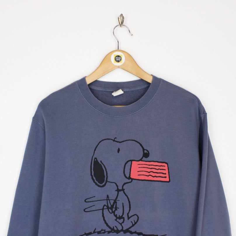 Vintage 90's Peanuts Snoopy Blue Spellout Crew Neck Sweatshirt Jumper Size on label: Medium Our recommended size: Medium Pit to pit (inches): 22 Length (inches): 26.5 All products listed are vintage unless stated otherwise in the description. These items are pre-loved and pre-worn, resulting in small signs of wear and minor fading. We think this adds to their unique authenticity - The sweatshirt does have a mark to the front, this is reflected in the price Please contact us if you have any further questions!