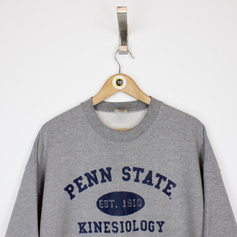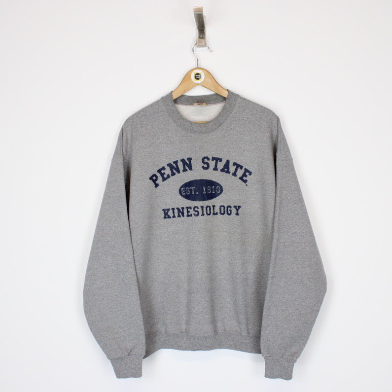Vintage 90's Penn State USA Grey and Navy Blue Crew Neck Spellout Sweatshirt Jumper Size on label: XL Our recommended size: Medium Pit to pit (inches): 23.5 Length (inches): 26 All products listed are vintage unless stated otherwise in the description. These items are pre-loved and pre-worn, resulting in small signs of wear and minor fading. We think this adds to their unique authenticity Please contact us if you have any further questions