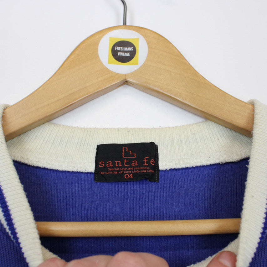 Vintage 90's Santafe Blue and White Crew Neck Spellout Sweatshirt Jumper Size on label: O4 Our recommended size: Large Pit to pit (inches): 24 Length (inches): 27 All products listed are vintage unless stated otherwise in the description. These items are pre-loved and pre-worn, resulting in small signs of wear and minor fading. We think this adds to their unique authenticity, but if an item has any major flaws these will be stated below - The sweatshirt has a mark to the front, this is reflected in the price Please contact us if you have any further questions!