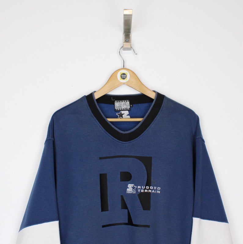 Vintage 90's Starter Blue Spellout Sweatshirt Jumper Size on label: Large Our recommended size: Large Pit to pit (inches): 23.5 Length (inches): 28 All products listed are vintage unless stated otherwise in the description. These items are pre-loved and pre-worn, resulting in small signs of wear and sometimes minor flaws. We think this adds to their unique authenticity, but if an item has any bigger flaws these will be stated. - The sweatshirt has a couple of marks to the front, this is reflected in the price Please contact us if you have any further questions!