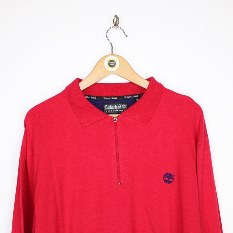 Vintage 90's Timberland Red and Navy Blue Pullover 1/4 Zip Sweatshirt Jumper Size on label: XL Our recommended size: XL Pit to pit (inches): 24 Length (inches): 28 All products listed are vintage unless stated otherwise in the description. These items are pre-loved and pre-worn, resulting in small signs of wear and minor fading. We think this adds to their unique authenticity, but if an item has any major flaws these will be stated below. Please contact us if you have any further questions!