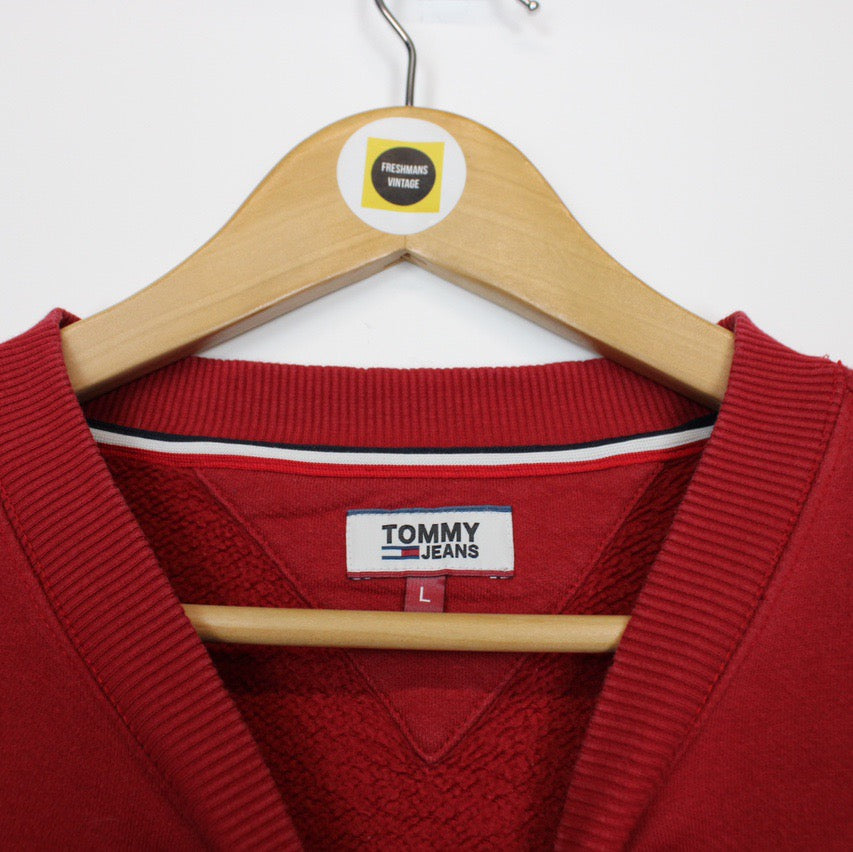 Vintage 00's Tommy Hilfiger Jeans Red, White and Black Spellout Sweatshirt Jumper Size on label: Women's Large Our recommended size: Women's Large Pit to pit (inches): 26 Length (inches): 25 All products listed are vintage unless stated otherwise in the description. These items are pre-loved and pre-worn, resulting in small signs of wear and minor fading. We think this adds to their unique authenticity, but if an item has any major flaws these will be stated below. - Sweatshirt does a stain to the right sleeve cuff, this is reflected in the price Please contact us if you have any further questions!