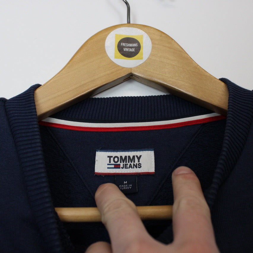 Vintage 00's Tommy Hilfiger Jeans Navy Blue Crew Neck Spellout Sweatshirt Jumper Size on label: Women's Medium Our recommended size: Women's Medium Pit to pit (inches): 21 Length (inches): 24.5 All products listed are vintage unless stated otherwise in the description. These items are pre-loved and pre-worn, resulting in small signs of wear and minor fading. We think this adds to their unique authenticity, but if an item has any major flaws these will be stated below. Please contact us if you have any further questions!