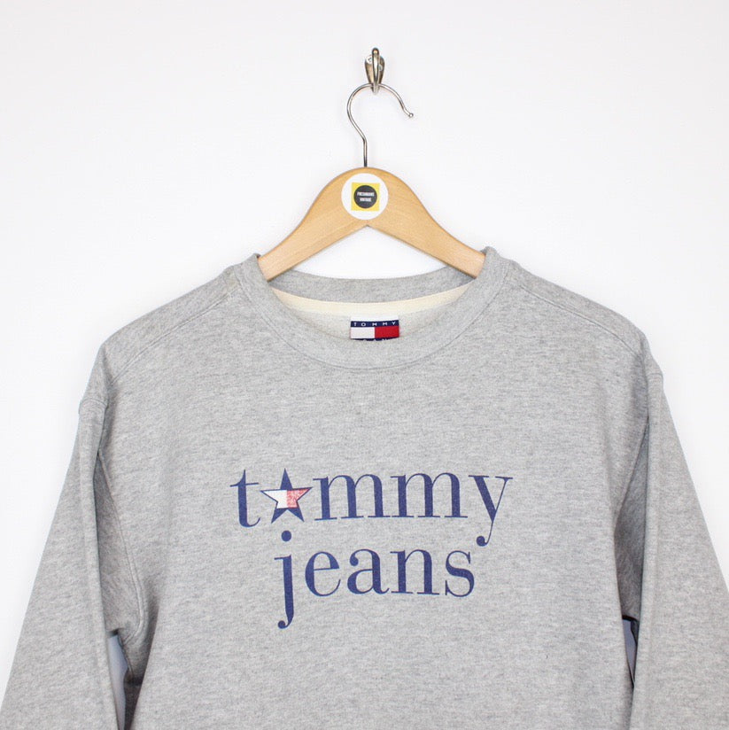 Vintage 90's Tommy Hilfiger Jeans Grey Crew Neck Spellout Sweatshirt Jumper Size on label: Women's Small Our recommended size: Women's Small Pit to pit (inches): 21 Length (inches): 24.5 All products listed are vintage unless stated otherwise in the description. These items are pre-loved and pre-worn, resulting in small signs of wear and minor fading. We think this adds to their unique authenticity, but if an item has any major flaws these will be stated below. Please contact us if you have any further questions!
