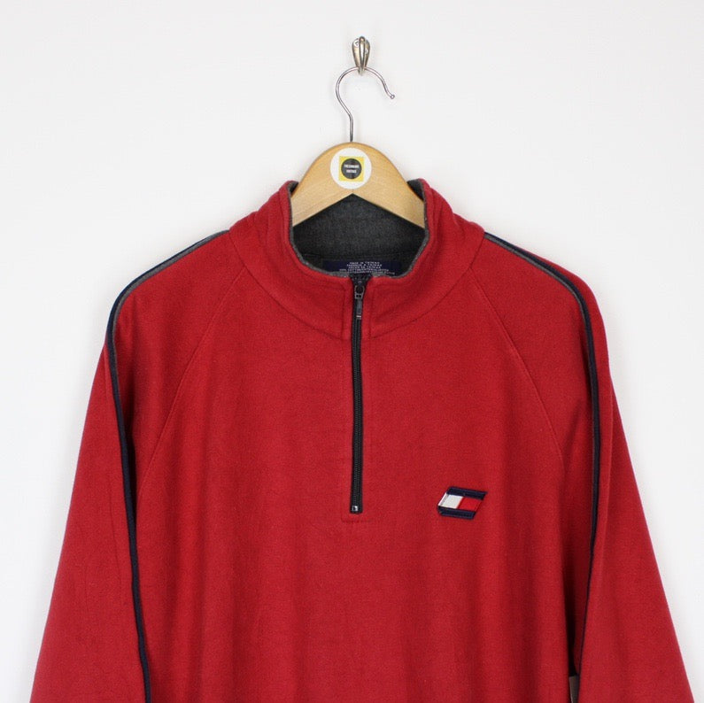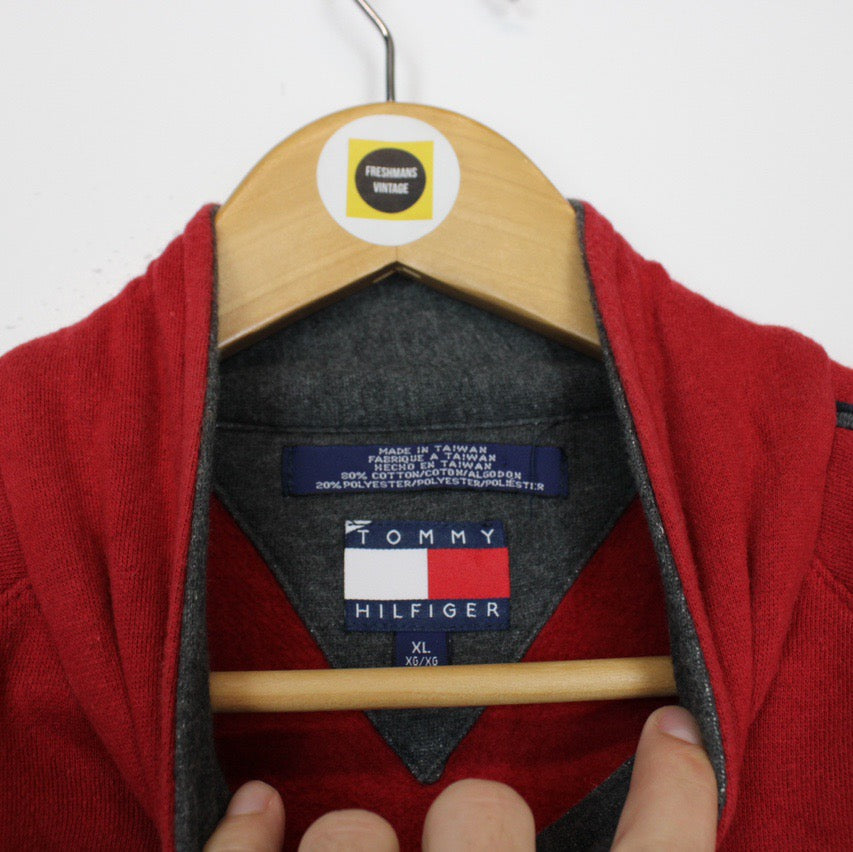 Vintage 90's Tommy Hilfiger Red Pullover 1/4 Zip Spellout Sweatshirt Jumper Size on label: XL Our recommended size: XL Pit to pit (inches): 26 Length (inches): 32 All products listed are vintage unless stated otherwise in the description. These items are pre-loved and pre-worn, resulting in small signs of wear and minor fading. We think this adds to their unique authenticity, but if an item has any major flaws these will be stated below. Please contact us if you have any further questions!