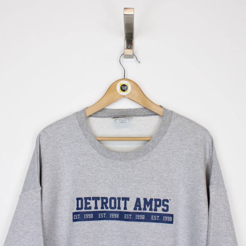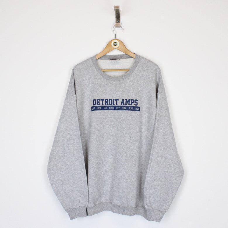 Vintage 90's Detroit Amps USA Grey Crew Neck Spellout Sweatshirt Jumper Size on label: Large Our recommended size: Large Pit to pit (inches): 24.5 Length (inches): 27.5 All products listed are vintage unless stated otherwise in the description. These items are pre-loved and pre-worn, resulting in small signs of wear and minor fading. We think this adds to their unique authenticity Please contact us if you have any further questions!
