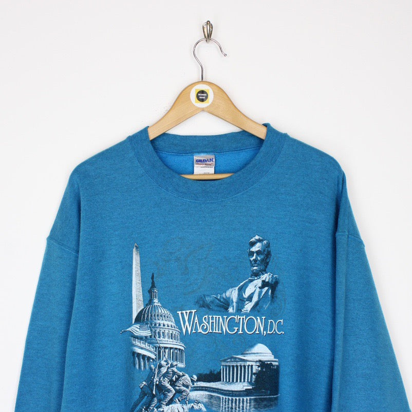Vintage 90's Washington DC USA Blue Spellout Crew Neck Sweatshirt Jumper Size on label: Medium Our recommended size: Medium Pit to pit (inches): 23 Length (inches): 26.5 All products listed are vintage unless stated otherwise in the description. These items are pre-loved and pre-worn, resulting in small signs of wear and minor fading. We think this adds to their unique authenticity Please contact us if you have any further questions!