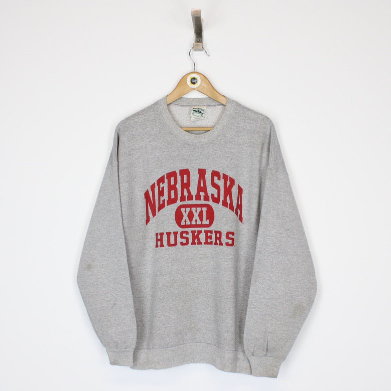 Vintage 90's Nebraska Huskers USA Grey Crew Neck Spellout Sweatshirt Jumper Size on label: Large Our recommended size: Small Pit to pit (inches): 23.5 Length (inches): 25 All products listed are vintage unless stated otherwise in the description. These items are pre-loved and pre-worn, resulting in small signs of wear and minor fading. We think this adds to their unique authenticity - The sweatshirt does have a mark to the front and both of the sleeves, this is reflected in the price Please contact us if you have any further questions!