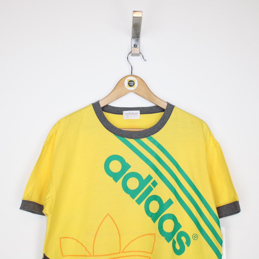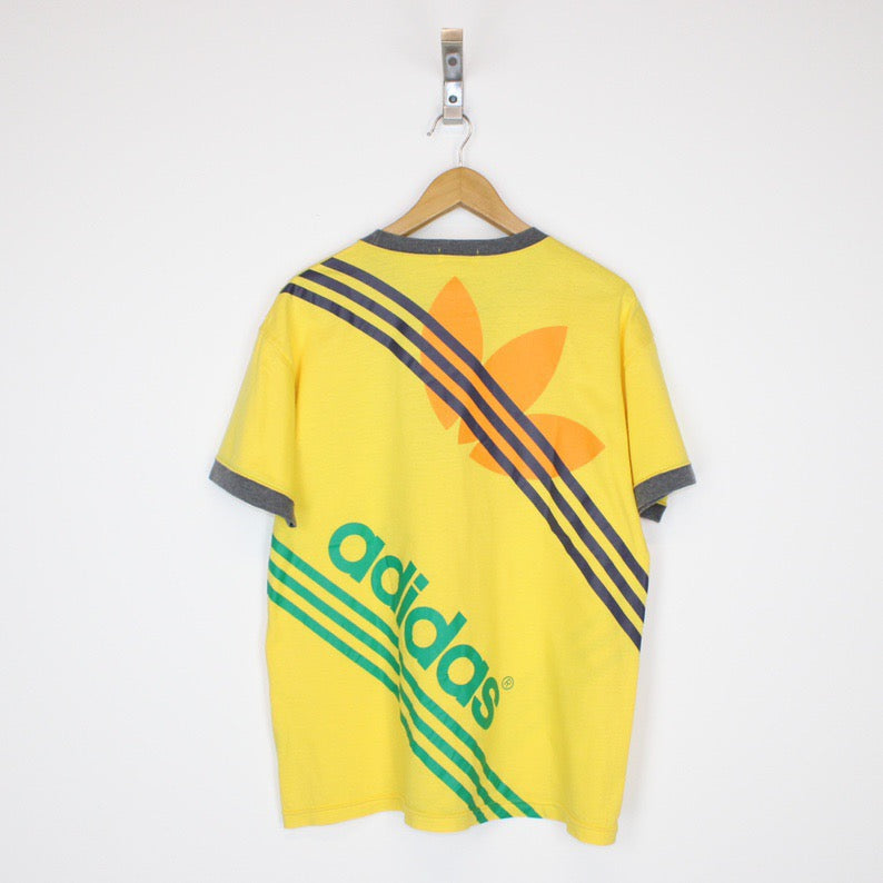 Vintage 90's Adidas Multicoloured Short Sleeve Spellout T-Shirt Size on label: Large Our recommended size: Large Pit to pit (inches): 21.5 Length (inches): 28 All products listed are vintage unless stated otherwise in the description. These items are pre-loved and pre-worn, resulting in small signs of wear and fading. We think this adds to their unique authenticity, but if an item has any major flaws these will be stated. - The item has a mark to the front, this is reflected in the price Please contact us if you have any further questions!