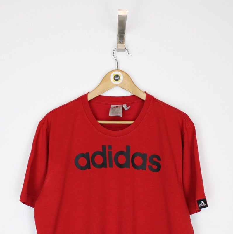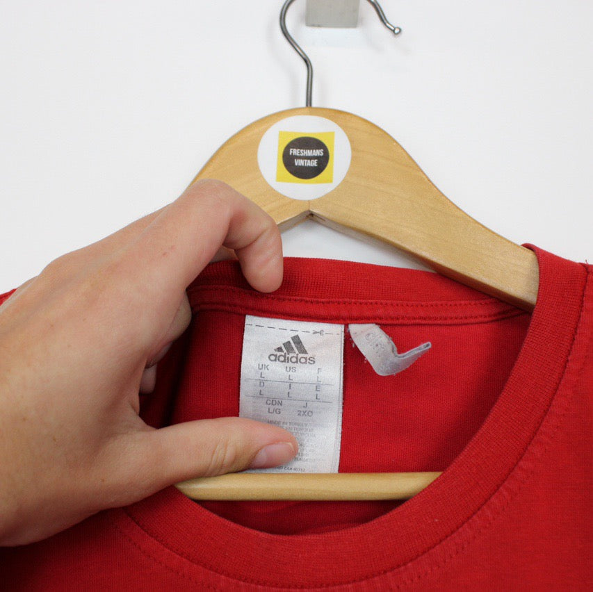 Vintage 00's Adidas Red and Black Crew Neck Spellout Short Sleeve T-Shirt Size on label: Large Our recommended size: Large Pit to pit (inches): 23.5 Length (inches): 29 All products listed are vintage unless stated otherwise in the description. These items are pre-loved and pre-worn, resulting in small signs of wear and fading. We think this adds to their unique authenticity, but if an item has any major flaws these will be stated. Please contact us if you have any further questions!