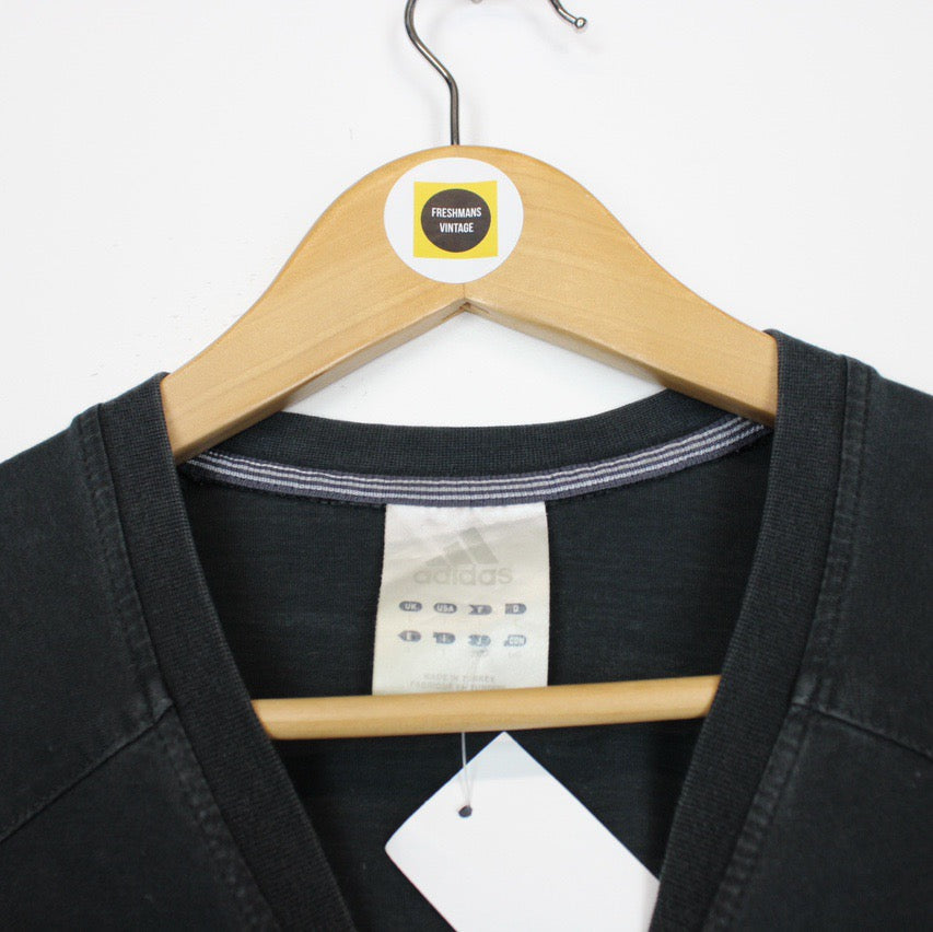 Vintage Adidas Black and Grey Crew Neck Short Sleeve Spellout T-Shirt Size on label: Large Our recommended size: Large Pit to pit (inches): 22 Length (inches): 29 All products listed are vintage unless stated otherwise in the description. These items are pre-loved and pre-worn, resulting in small signs of wear and minor fading. We think this adds to their unique authenticity, but if an item has any major flaws these will be stated below. Please contact us if you have any further questions!