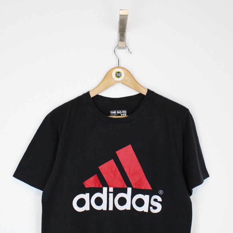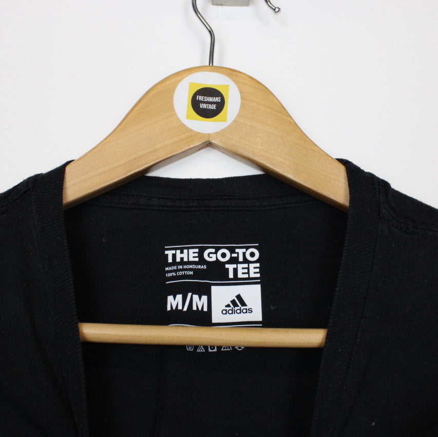Vintage 00's Adidas Black Crew Neck Spellout Short Sleeve T-Shirt Size on label: Medium Our recommended size: Medium Pit to pit (inches): 20 Length (inches): 27 All products listed are vintage unless stated otherwise in the description. These items are pre-loved and pre-worn, resulting in small signs of wear and fading. We think this adds to their unique authenticity, but if an item has any major flaws these will be stated. - The t-shirt has 2 small stains to the back, this is reflected in the price Please contact us if you have any further questions!