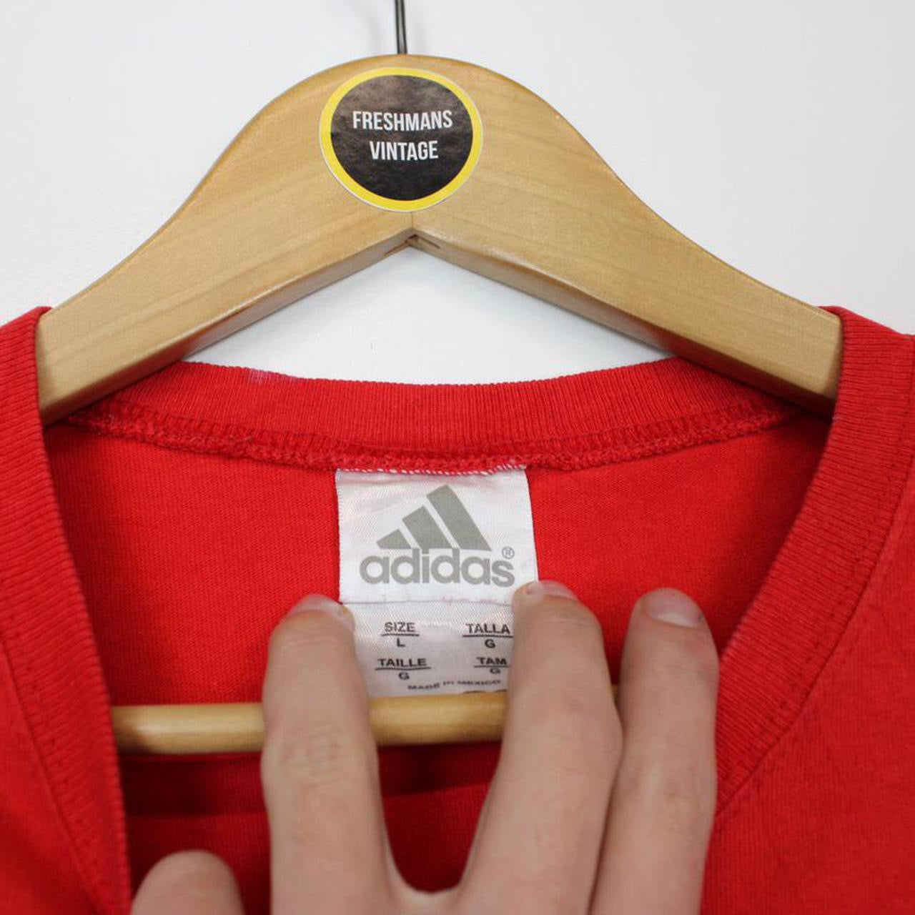 Vintage 00's Adidas Red and White Crew Neck Spellout Short Sleeve T-Shirt Size on label: Large Our recommended size: Medium Pit to pit (inches): 20.5 Length (inches): 25.5 All products listed are vintage unless stated otherwise in the description. These items are pre-loved and pre-worn, resulting in small signs of wear and fading. We think this adds to their unique authenticity, but if an item has any major flaws these will be stated. Please contact us if you have any further questions!
