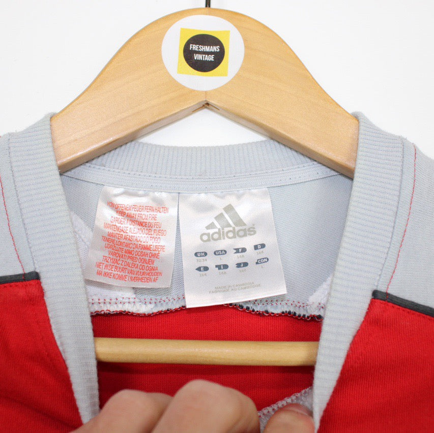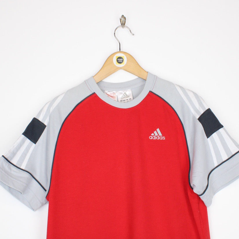 Vintage 00's Adidas Red, Light Grey and White Crew Neck Short Sleeve T-Shirt - in very good worn condition - men's size Small, 19 inches pit to pit and 26 inches length - instant buy is on