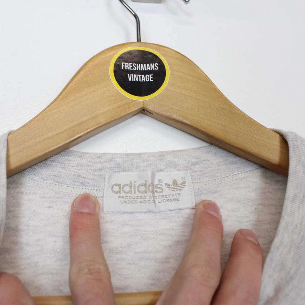 Vintage 90's Adidas Grey Crew Neck Spellout Short Sleeve T-Shirt Size on label: M/L Our recommended size: Small Pit to pit (inches): 20 Length (inches): 25 All products listed are vintage unless stated otherwise in the description. These items are pre-loved and pre-worn, resulting in small signs of wear and fading. We think this adds to their unique authenticity, but if an item has any major flaws these will be stated. Please contact us if you have any further questions!