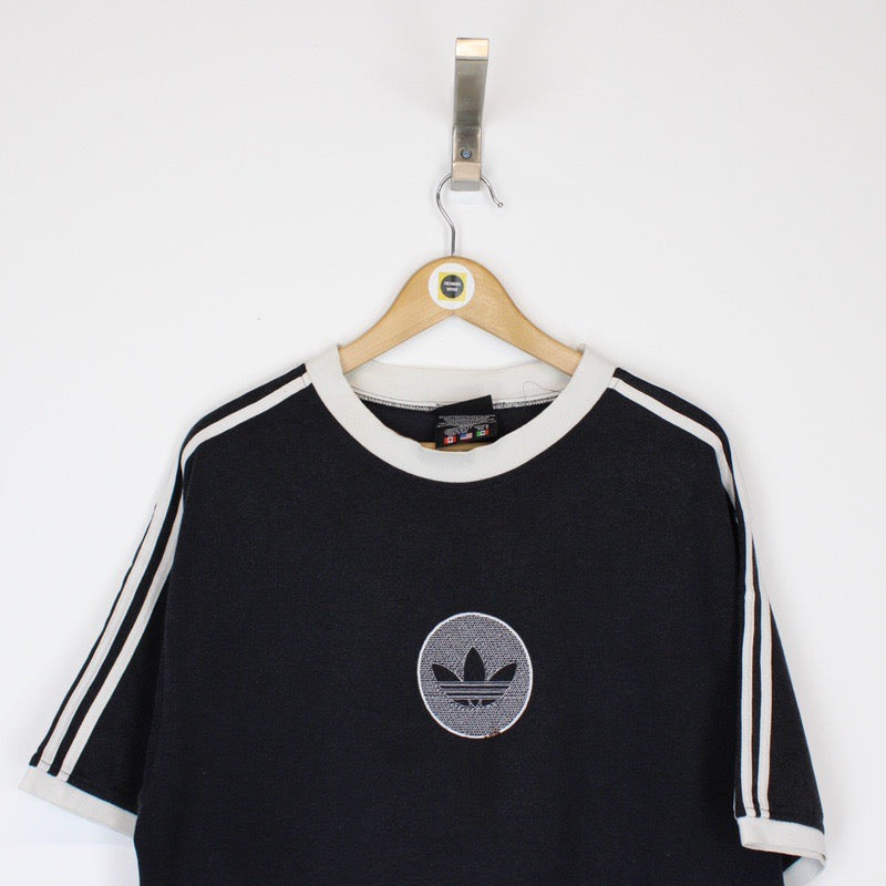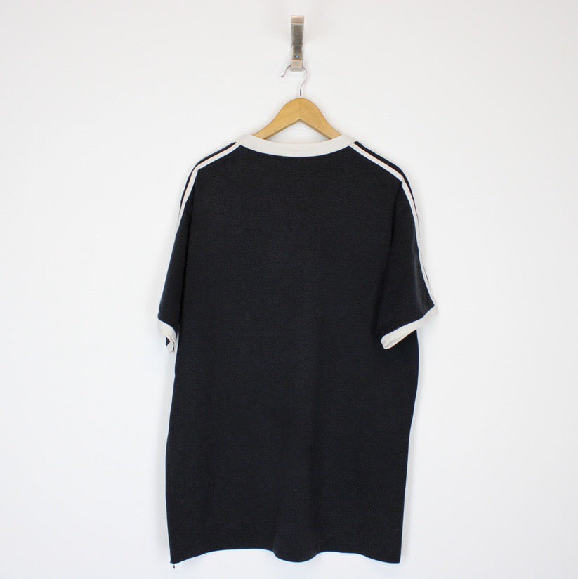 Vintage 90's Adidas Black and White Crew Neck Spellout Short Sleeve T-Shirt Size on label: Large Our recommended size: XL Pit to pit (inches): 24 Length (inches): 34.5 All products listed are vintage unless stated otherwise in the description. These items are pre-loved and pre-worn, resulting in small signs of wear and fading. We think this adds to their unique authenticity, but if an item has any major flaws these will be stated. - The t-shirt does have a small mark to the bottom of the logo, this is reflected in the price Please contact us if you have any further questions!