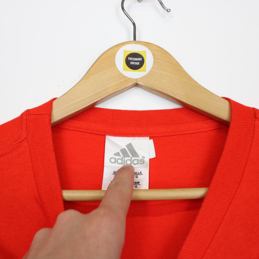 Vintage 90's Adidas Red and White Crew Neck Spellout Short Sleeve T-Shirt Size on label: Large Our recommended size: XL Pit to pit (inches): 23 Length (inches): 29 All products listed are vintage unless stated otherwise in the description. These items are pre-loved and pre-worn, resulting in small signs of wear and fading. We think this adds to their unique authenticity, but if an item has any major flaws these will be stated. Please contact us if you have any further questions!