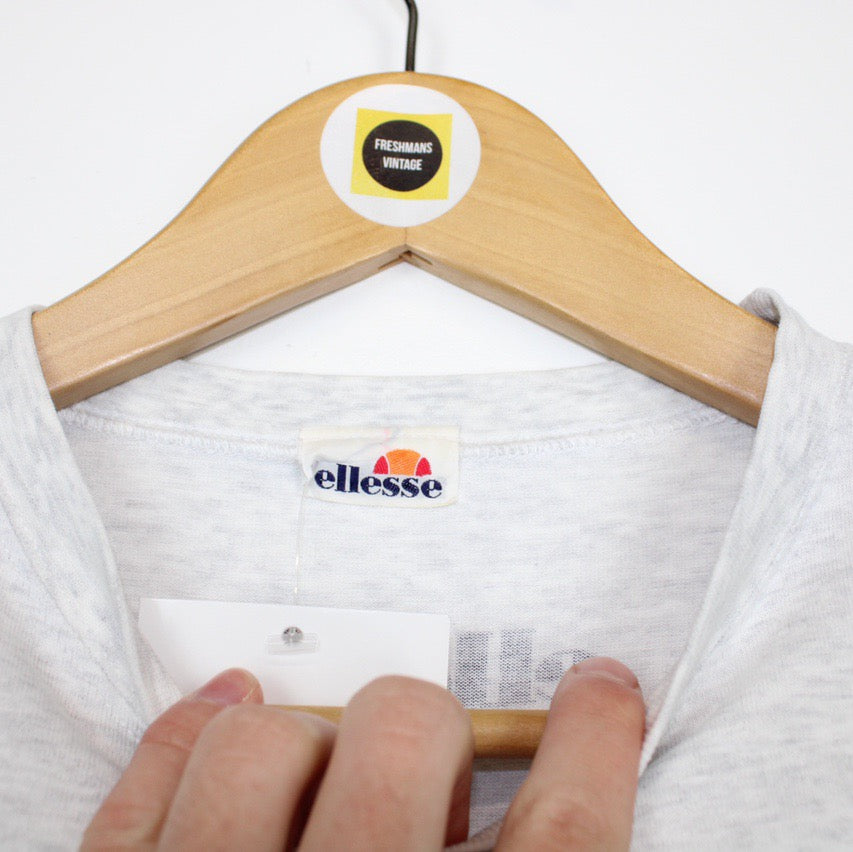 Vintage 90's Ellesse Light Grey Spellout Short Sleeve T-Shirt Size on label: N/A Our recommended size: Small Pit to pit (inches): 20.5 Length (inches): 26 All products listed are vintage unless stated otherwise in the description. These items are pre-loved and pre-worn, resulting in small signs of wear and minor fading. We think this adds to their unique authenticity, but if an item has any major flaws these will be stated below. - The t-shirt has a very small mark to the hem Please contact us if you have any further questions!