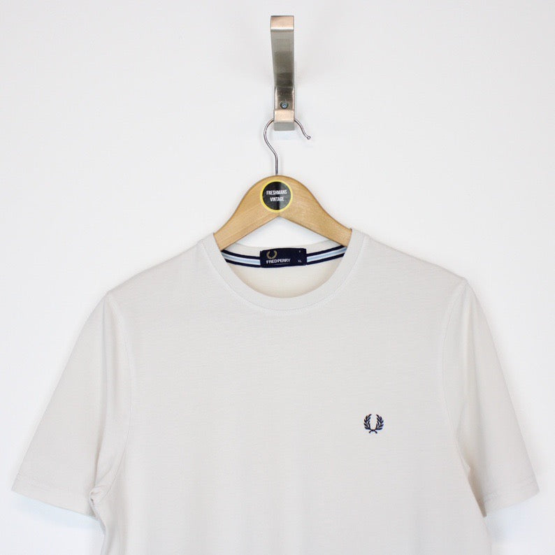 Vintage 00's Fred Perry Off White Short Sleeve T-Shirt Size on label: Youth's XL Our recommended size: Small Pit to pit (inches): 18.5 Length (inches): 26.5 All products listed are vintage unless stated otherwise in the description. These items are pre-loved and pre-worn, resulting in small signs of wear and fading. We think this adds to their unique authenticity, but if an item has any major flaws these will be stated. Please contact us if you have any further questions!