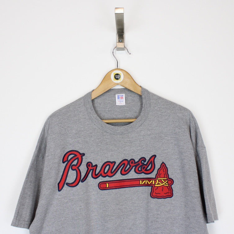 Vintage 90's Atlanta Braves MLB Grey USA Short Sleeve Spellout T-Shirt Size on label: XL Our recommended size: XL Pit to pit (inches): 24 Length (inches): 30.5 All products listed are vintage unless stated otherwise in the description. These items are pre-loved and pre-worn, resulting in small signs of wear and sometimes minor flaws. We think this adds to their unique authenticity, but if an item has any bigger flaws these will be stated. Please contact us if you have any further questions!