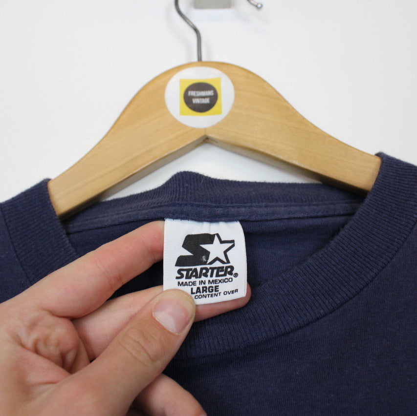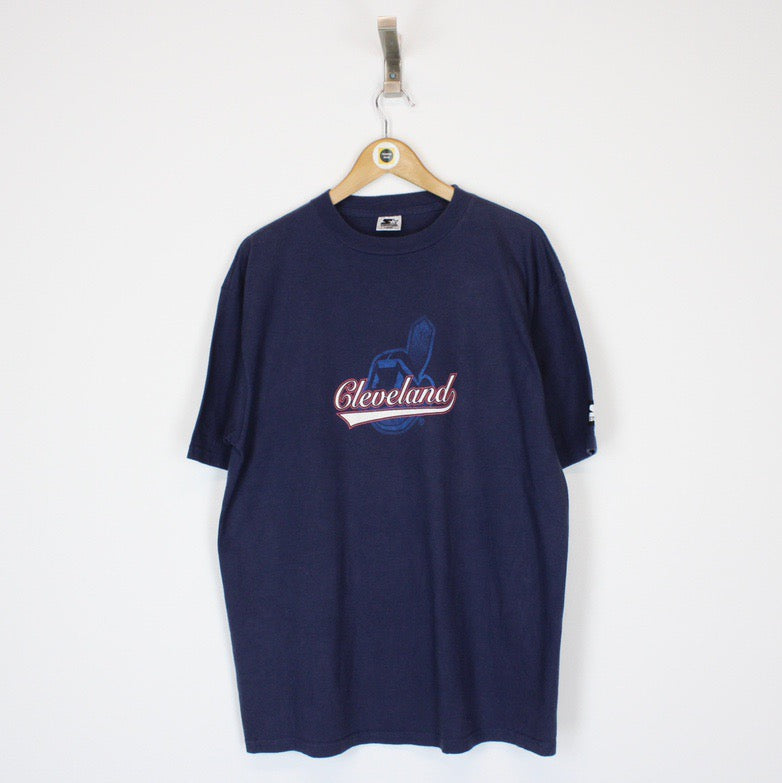 Vintage Starter 1998 Cleveland Indians MLB Navy Blue USA Short Sleeve Spellout T-Shirt Size on label: Large Our recommended size: Large/XL Pit to pit (inches): 21.5 Length (inches): 30.5 All products listed are vintage unless stated otherwise in the description. These items are pre-loved and pre-worn, resulting in small signs of wear and sometimes minor flaws. We think this adds to their unique authenticity, but if an item has any bigger flaws these will be stated. Please contact us if you have any further questions!