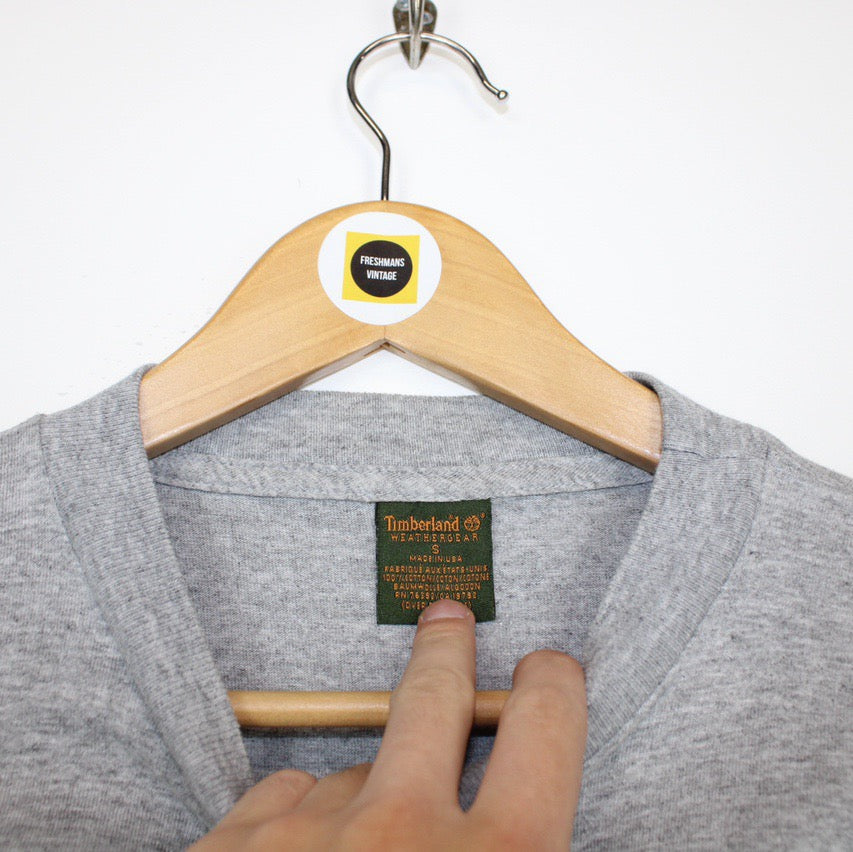 Vintage 00's Timberland Grey Long Sleeve T-Shirt Size on label: Small Our recommended size: Small Pit to pit (inches): 17.5 Length (inches): 28 All products listed are vintage unless stated otherwise in the description. These items are pre-loved and pre-worn, resulting in small signs of wear and minor fading. We think this adds to their unique authenticity, but if an item has any major flaws these will be stated below. Please contact us if you have any further questions!