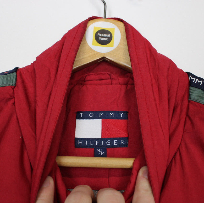 Vintage 90's Tommy Hilfiger Red and Green Waterproof Spellout Jacket Size on label: Medium Our recommended size: Large Pit to pit (inches): 25 Length (inches): 30.5 All products listed are vintage unless stated otherwise in the description. These items are pre-loved and pre-worn, resulting in small signs of wear and minor fading. We think this adds to their unique authenticity, but if an item has any major flaws these will be stated below. Please contact us if you have any further questions!