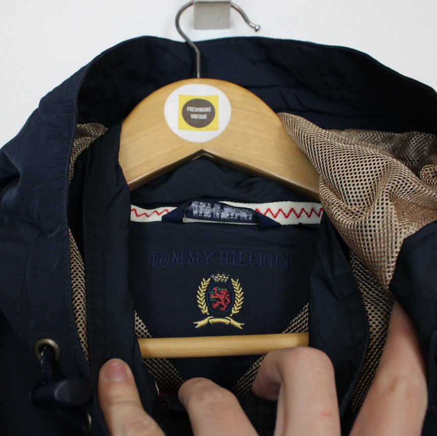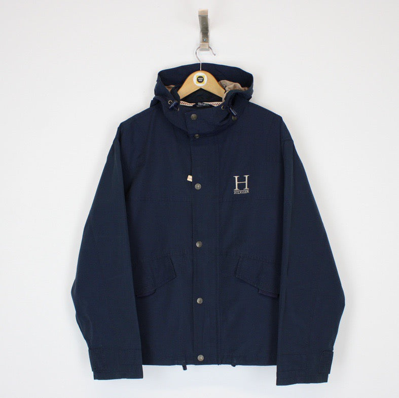 Vintage 90's Tommy Hilfiger Navy Blue Waterproof Spellout Jacket Size on label: Medium Our recommended size: Medium Pit to pit (inches): 24.5 Length (inches): 26 All products listed are vintage unless stated otherwise in the description. These items are pre-loved and pre-worn, resulting in small signs of wear and minor fading. We think this adds to their unique authenticity, but if an item has any major flaws these will be stated below. Please contact us if you have any further questions!