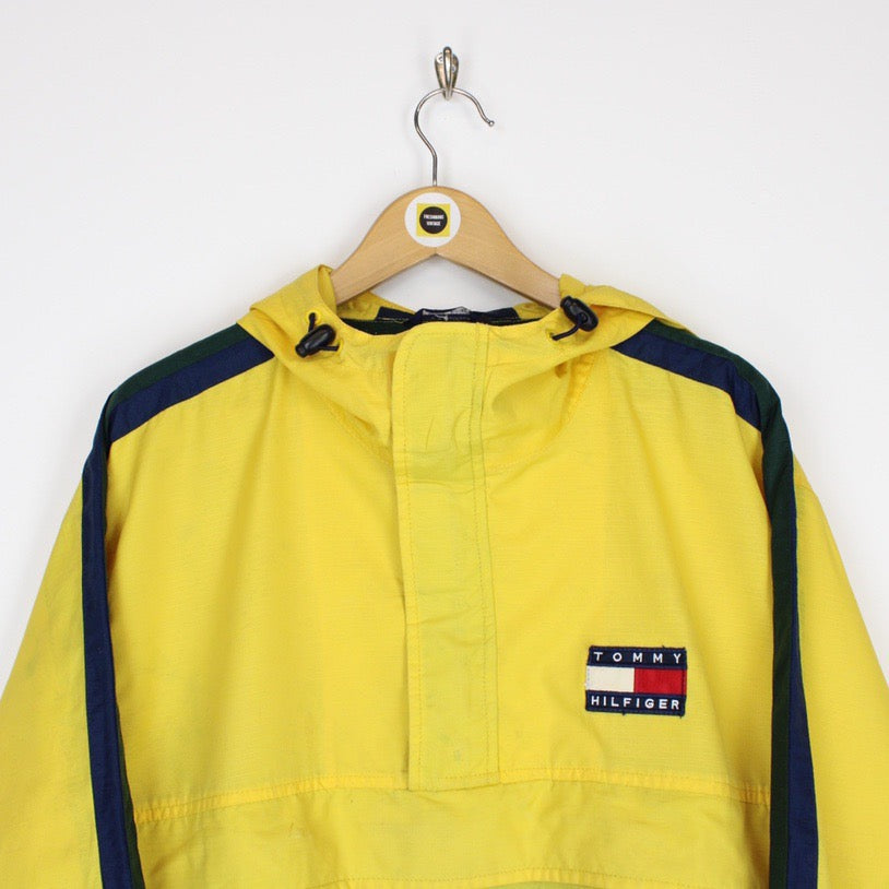 Vintage 90's Tommy Hilfiger Yellow Pullover Spellout Waterproof Anorak Jacket Size on label: Medium Our recommended size: Medium Pit to pit (inches): 26 Length (inches): 28.5 All products listed are vintage unless stated otherwise in the description. These items are pre-loved and pre-worn, resulting in small signs of wear and fading. We think this adds to their unique authenticity, but if an item has any major flaws these will be stated. - The jacket does have some marking from the lining and outer shell sticking together Please contact us if you have any further questions!