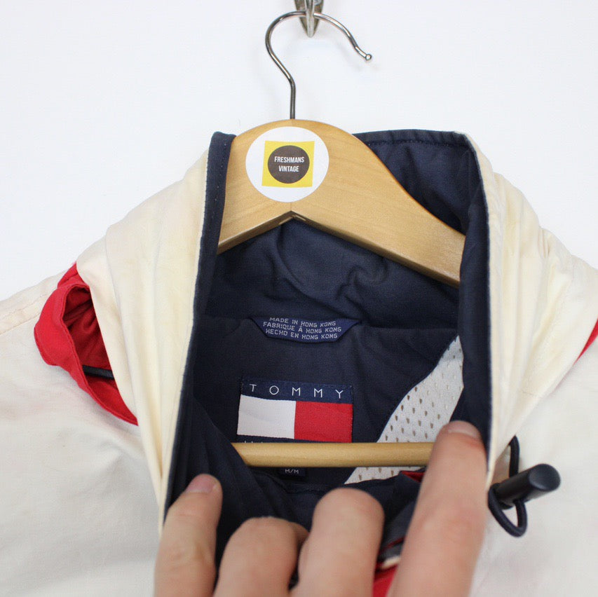 Vintage 90's Tommy Hilfiger Red and White Waterproof Spellout Jacket Size on label: Medium Our recommended size: Medium Pit to pit (inches): 25 Length (inches): 29 All products listed are vintage unless stated otherwise in the description. These items are pre-loved and pre-worn, resulting in small signs of wear and minor fading. We think this adds to their unique authenticity, but if an item has any major flaws these will be stated below. - The jacket does have some marking to the white sections on both the front and back Please contact us if you have any further questions!