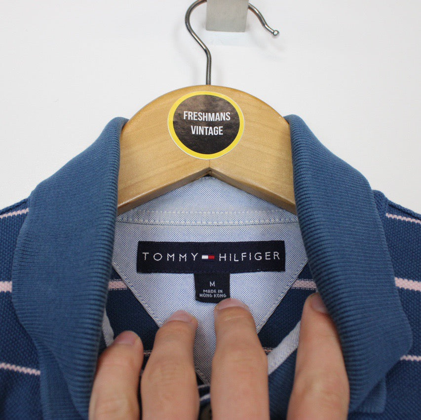 Vintage 00's Tommy Hilfiger Blue and White Striped Short Sleeve Polo Shirt Size on label: Medium Our recommended size: Medium Pit to pit (inches): 20.5 Length (inches): 27.5 All products listed are vintage unless stated otherwise in the description. These items are pre-loved and pre-worn, resulting in small signs of wear and minor fading. We think this adds to their unique authenticity, but if an item has any major flaws these will be stated below. - The polo does have a few light marks to the front, this is reflected in the price Please contact us if you have any further questions!
