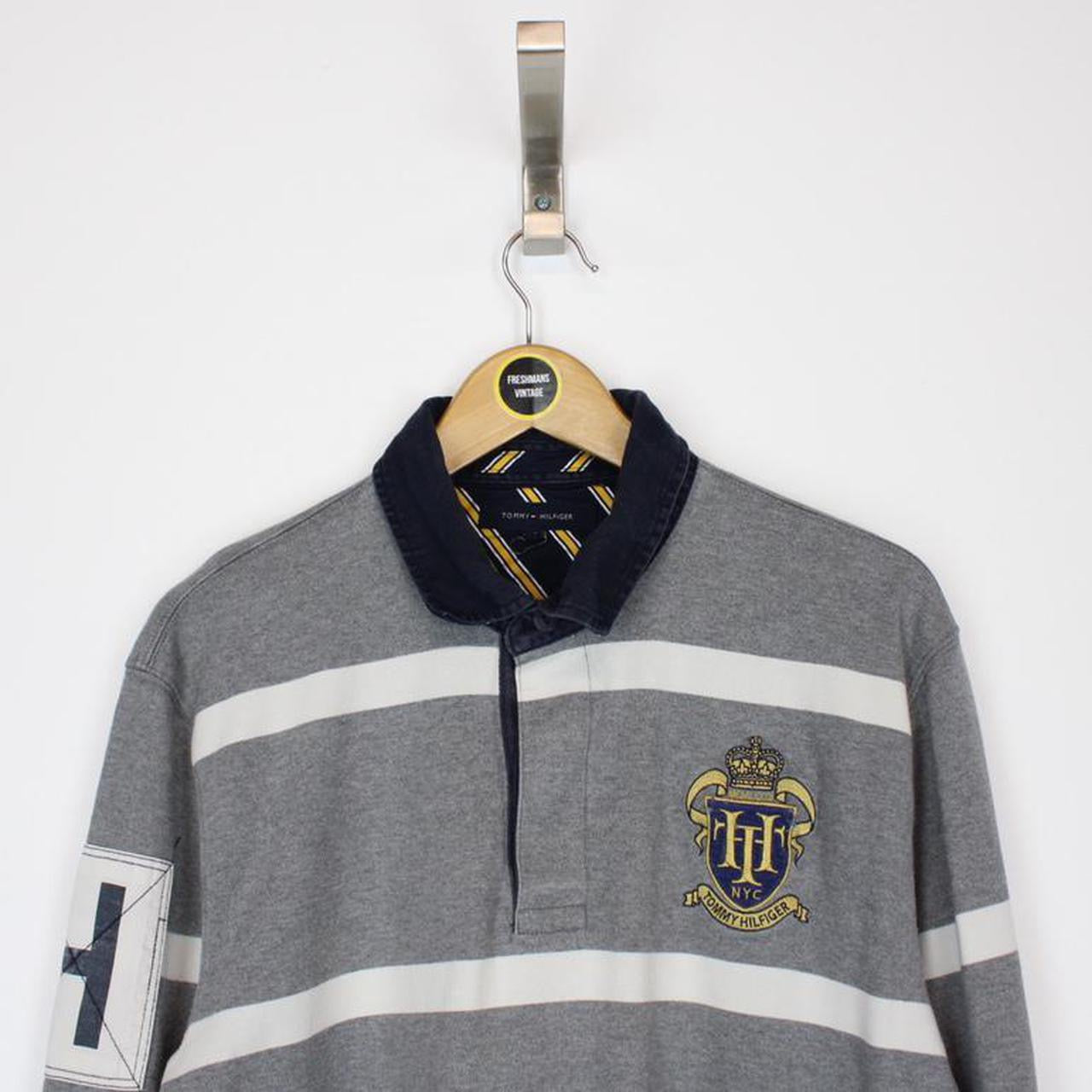 Vintage 00's Tommy Hilfiger Grey and White Striped Long Sleeve Rugby Shirt Size on label: XL Our recommended size: XL Pit to pit (inches): 22 Length (inches): 27.5 All products listed are vintage unless stated otherwise in the description. These items are pre-loved and pre-worn, resulting in small signs of wear and minor fading. We think this adds to their unique authenticity, but if an item has any major flaws these will be stated below. Please contact us if you have any further questions!