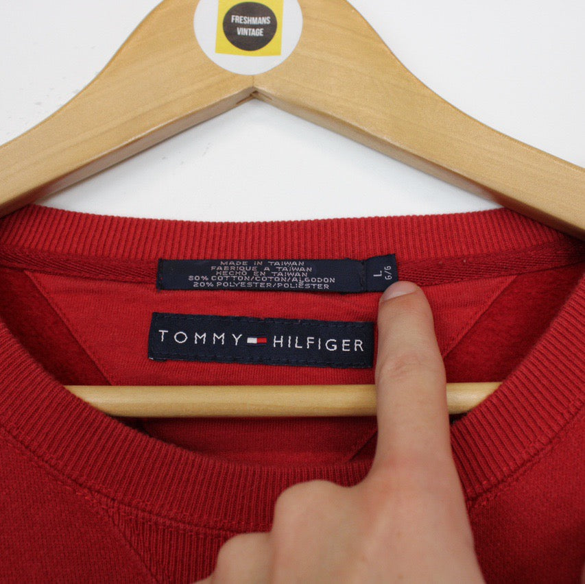 Vintage 90's Tommy Hilfiger Red Crew Neck Sweatshirt Jumper Size on label: Large Our recommended size: Large Pit to pit (inches): 26.5 Length (inches): 27.5 All products listed are vintage unless stated otherwise in the description. These items are pre-loved and pre-worn, resulting in small signs of wear and fading. We think this adds to their unique authenticity, but if an item has any major flaws these will be stated. Please contact us if you have any further questions!