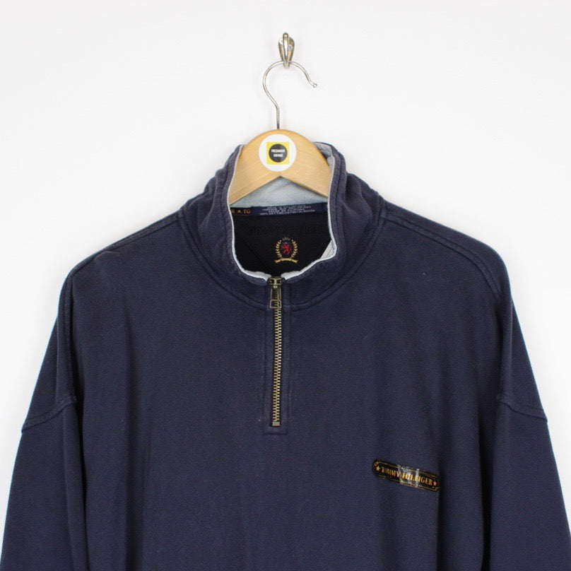 Vintage 90's Tommy Hilfiger Navy Blue Pullover 1/4 Zip Spellout Sweatshirt Jumper Size on label: XL Our recommended size: XL Pit to pit (inches): 26 Length (inches): 29 All products listed are vintage unless stated otherwise in the description. These items are pre-loved and pre-worn, resulting in small signs of wear and sometimes minor flaws. We think this adds to their unique authenticity, but if an item has any bigger flaws these will be stated. Please contact us if you have any further questions!
