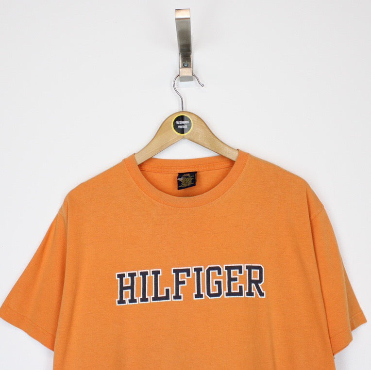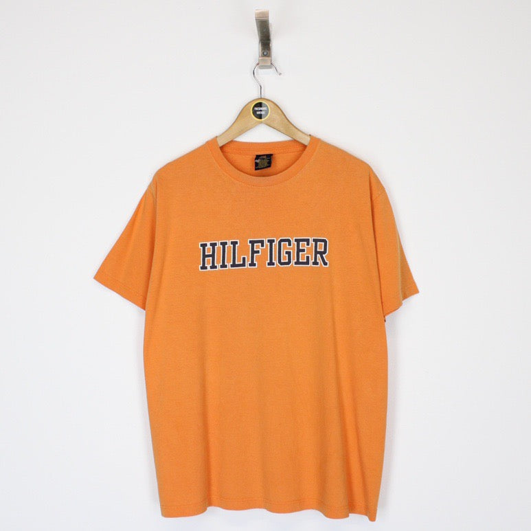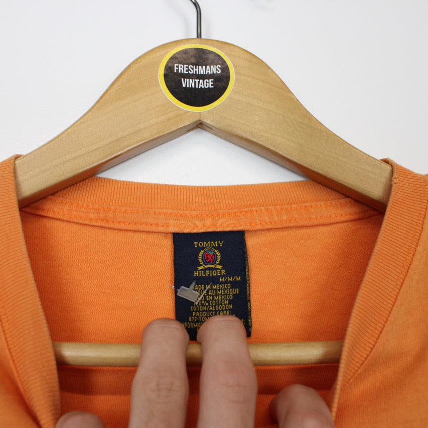 Vintage 00's Tommy Hilfiger Orange Short Sleeve Spellout T-Shirt Size on label: Medium Our recommended size: Medium Pit to pit (inches): 23 Length (inches): 27 All products listed are vintage unless stated otherwise in the description. These items are pre-loved and pre-worn, resulting in small signs of wear and fading. We think this adds to their unique authenticity, but if an item has any major flaws these will be stated. - The t-shirt does have a tiny mark to the back, this is reflected in the price Please contact us if you have any further questions!